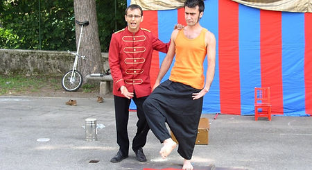 ​Due irriducibili degli anni settanta si ritrovano catapultati con il loro stile un po' retrò, nei giorni nostri, un po’ stralunati e impacciati daranno il via allo spettacolo con un assaggio di danza che dimostra che………..SI…….SONO PROPRIO RIMASTI UN PO’ INDIETRO COI TEMPI!!! Qui inizia la loro avventura e, anche se un po' maldestramente, dimostreranno tutta la loro abilità di giocolieri, acrobati ed equilibristi non senza ovviamente l'aiuto del pubblico che alla fine li porterà a far sorridere molte persone e a farsi molti amici.